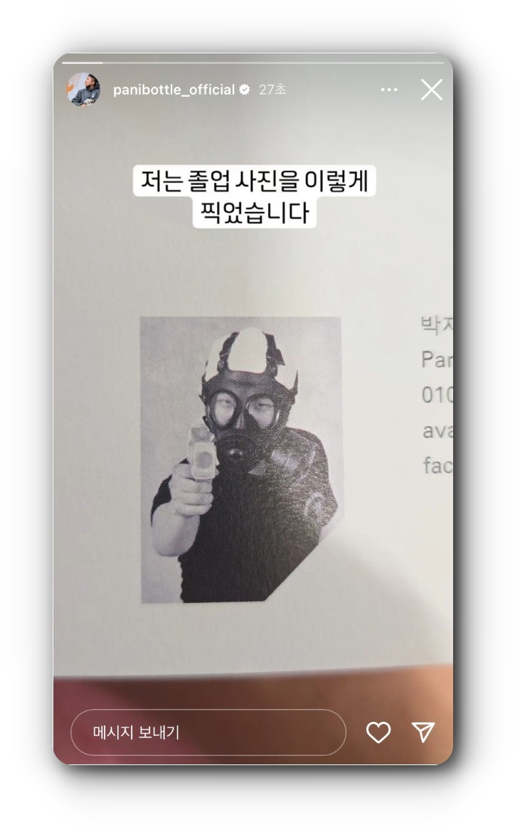 빠니보틀 졸업사진... 떠오르는게 있지만 참겠습니다. 의정부고 졸업사진같네요.