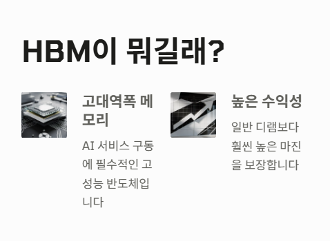 삼성전자나 SK하이닉스 같은 반도체 거물들이 지금 이 HBM 생산에 올인하고 있어요!!