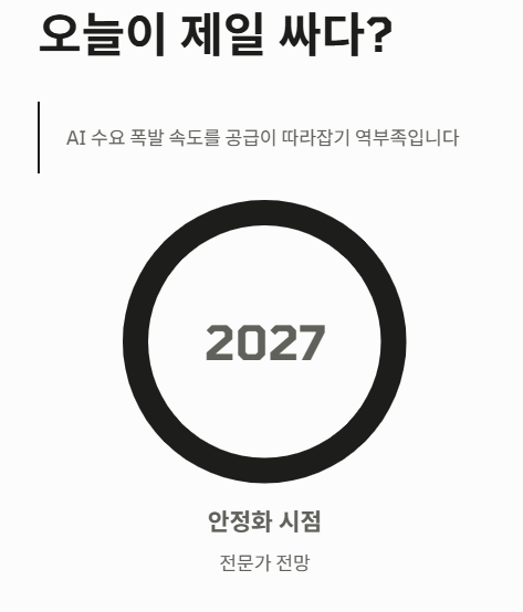 - A1. 현재의 반도체 수급 불균형과 AI 수요를 고려했을 때 적어도 내후년까지는 가격이 내려가기 힘들다는 게 업계의 전반적인 시각이더라고요!!